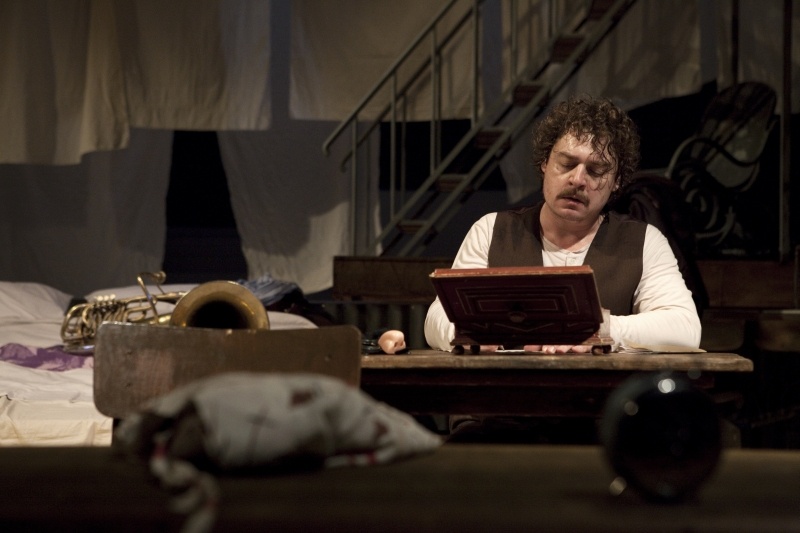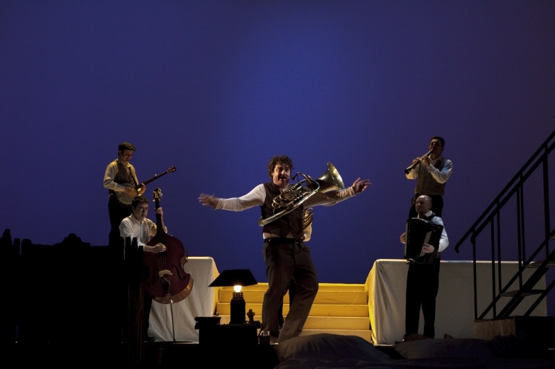 Машината вече се е задействала и на голямата сцена в Народния театър Александър Морфов вади не само оркестър, но и погребална процесия, има пищни веселби с шатри, танци на маса, каравана със стрелбище, Камен Донев ляга в ковчег и дори в един момент замирисва на скара.