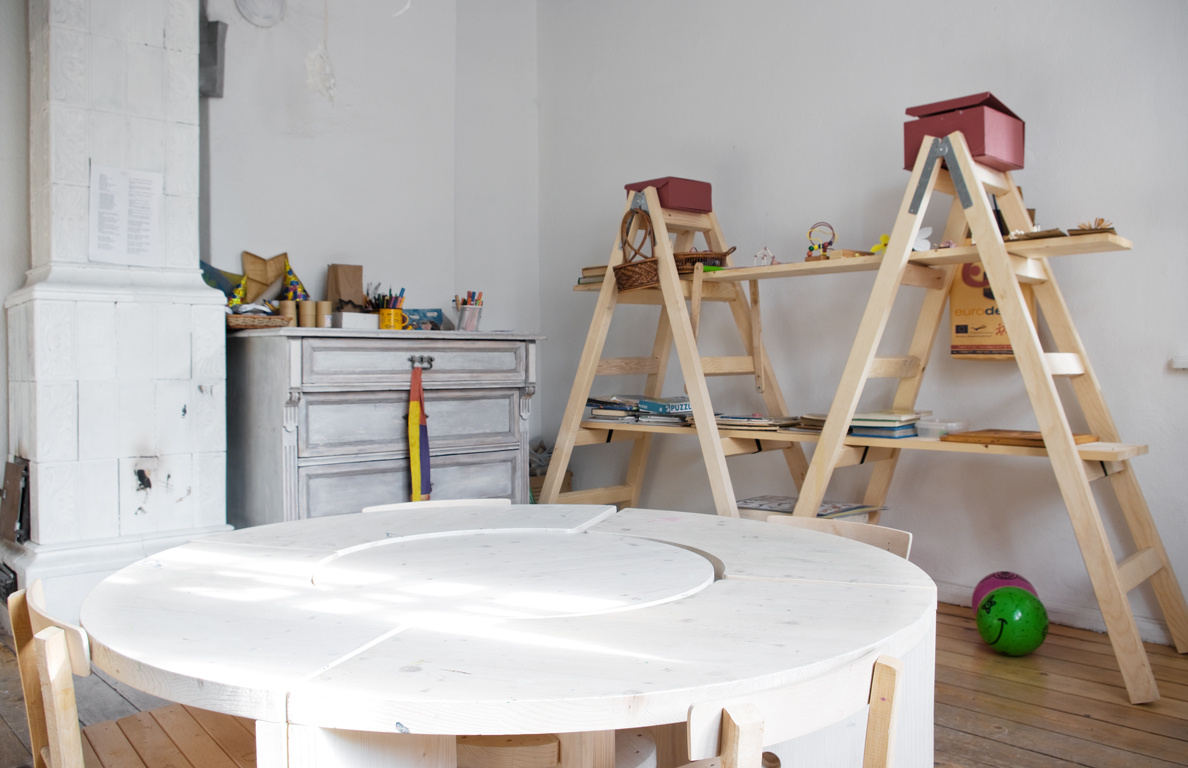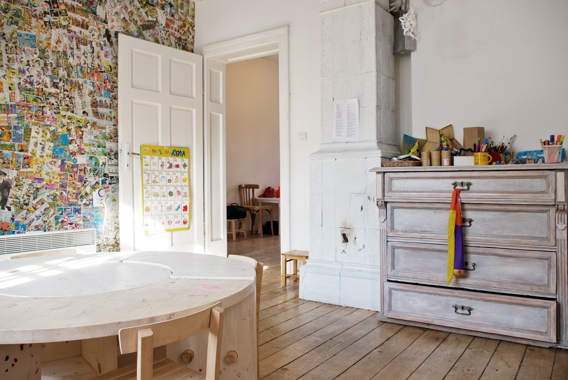 За хлапетата се грижат Елеонора и Калина - заедно танцуват народни танци, пеят и свирят на различни инструменти, слушат джаз и класика, чистят двора и пекат формички от тесто или глина в уникалната пещ в сутерена. Рисуват с картоф и четка, шият дрехи, правят кукли или колажи с всякакви подръчни (но все пак естествени) материали. Двете прилагат какви ли не хватки само и само да размърдат въображението на малките и въобще не разчитат на традиционните методи и играчки, а родителите също става да се включат в заниманията когато и с каквото могат. Художничката Оля Първанова например е луда на тема здравословно хранене и всяка сутрин приготвя закуската, като преди това грижливо я опакова по възможно най-артистичния начин. Отделно всяка сряда води и тематични ателиета - пуска им разни трикове от приложните изкуства и заедно правят най-различни предмети, от лампи до ароматизатори.