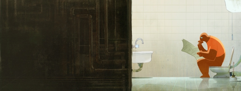 на него като на монтажен експеримент с 2D анимация - през повечето време действието се развива отзад