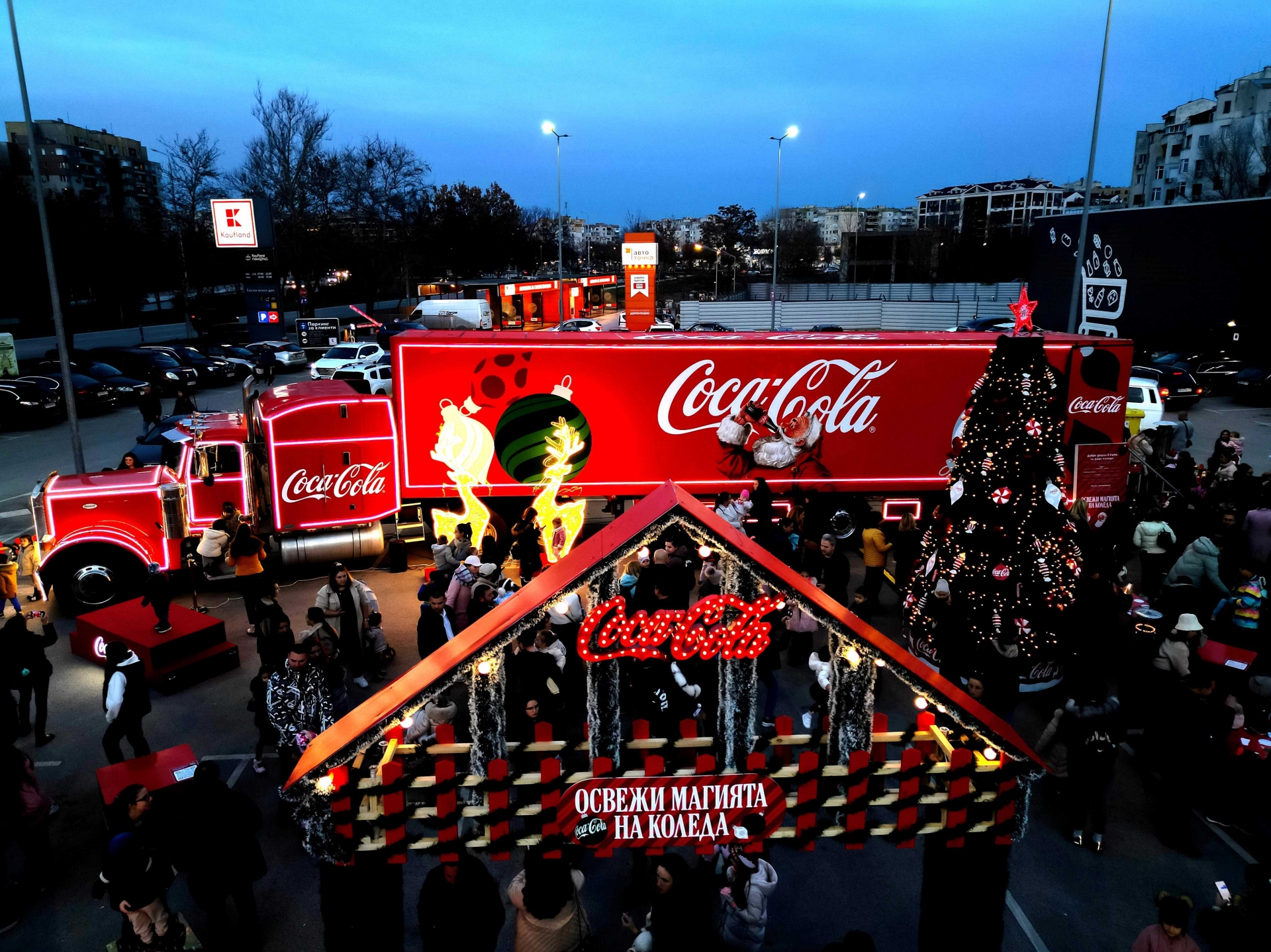 От началото на декември впечатляващият камион премина на празнично турне из страната, като Kaufland бе домакин на 8 от неговите спирки. Събитията зарадваха хиляди хора с празнични емоции и изненади. Тази година турнето, под мотото „Освежи магията на Коледа“, е насочено към хората, които влагат най-много грижа и любов, за да направят празниците специални за всички около тях. Емблематичният камион на Кока-Кола събра хиляди семейства и приятели, които станаха част от вълшебната атмосфера - от срещите с Дядо Коледа и зимни селфита, до забавления и топли мигове, споделени заедно.